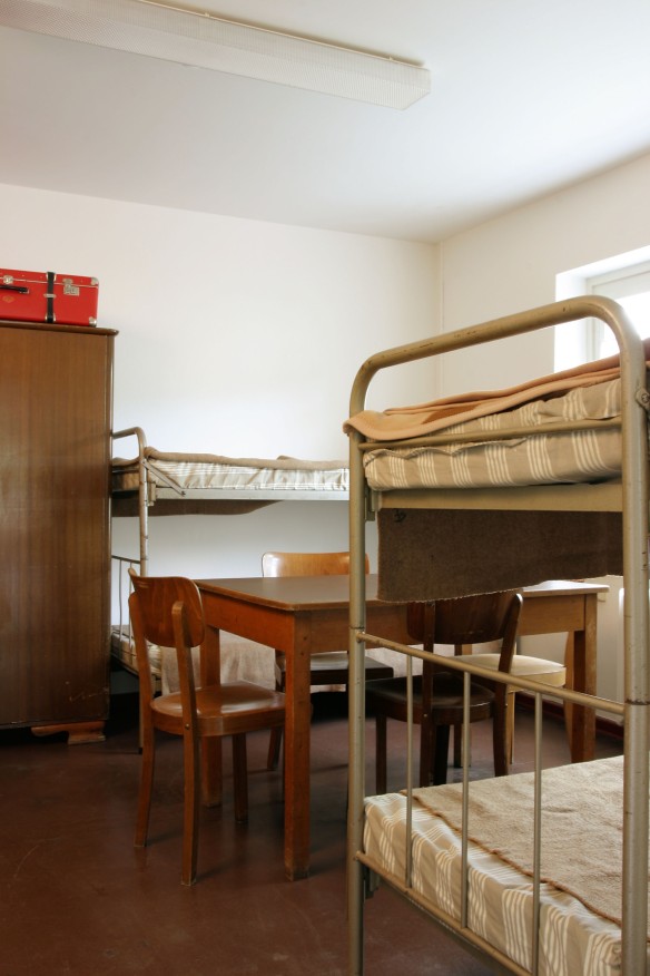 The seven exhibition rooms are organized thematically, covering an array of topics ranging from the refugees’ specific reasons for leaving East Germany to their social integration into West Germany. Political developments are systematically related to the personal experiences of refugees and emigrants. The exhibition presents individual biographies, describing the system of persecution in East Germany and the reception procedure in the West. A reconstructed refugee apartment with original furniture from the 1950s provides an impression of the living conditions in the Refugee Center.